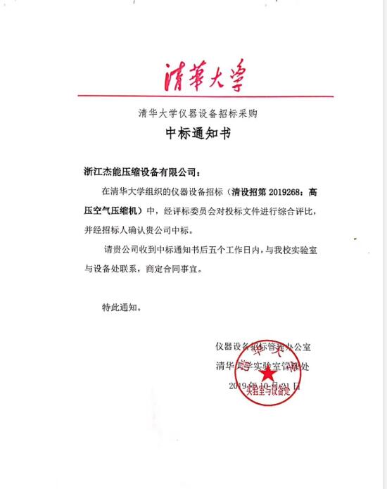 清華大學(xué)高壓空氣壓縮機采購項目中標(biāo),為辛麥恩今后的業(yè)務(wù)推廣、拓寬市場打下了堅實基礎(chǔ)。未來,辛麥恩將不斷科技創(chuàng)新,將為中國的教育科研提供最好的壓縮氣源。